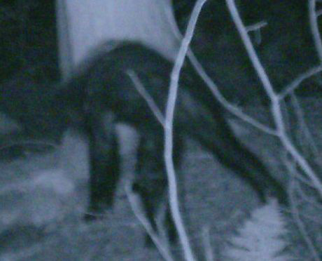 A YOUNG MALE BIGFOOT (SASQUATCH) PHOTOGRAPHED IN ALLEGHENY NATIONAL FOREST, PENNSYLVANIA, foraging for food for his plant-based diet. He accidentally activated a U.S. Forest Service automatic wildlife-filming trail camera, which took this picture. His people were transplanted to Earth by Star Nations in 7,509 B.C. from a dangerously-unstable, unpredictable star in the Crab Nebula. (Their star was 6550 LY away from Earth.) In 1054 A.D. Crab Nebula exploded in a super-nova, engulfing their home star. The Sasquatch are happy to be safely living here, but are wary and watchful for potentially-violent humans, and thus are seldom seen.