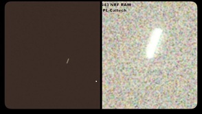 [2 NASA-JPL-Caltech photos of 3I/ATLAS (below): Interstellar Spaceship in black space; shining 3I/ATLAS in close-up (pixelated) photo.]