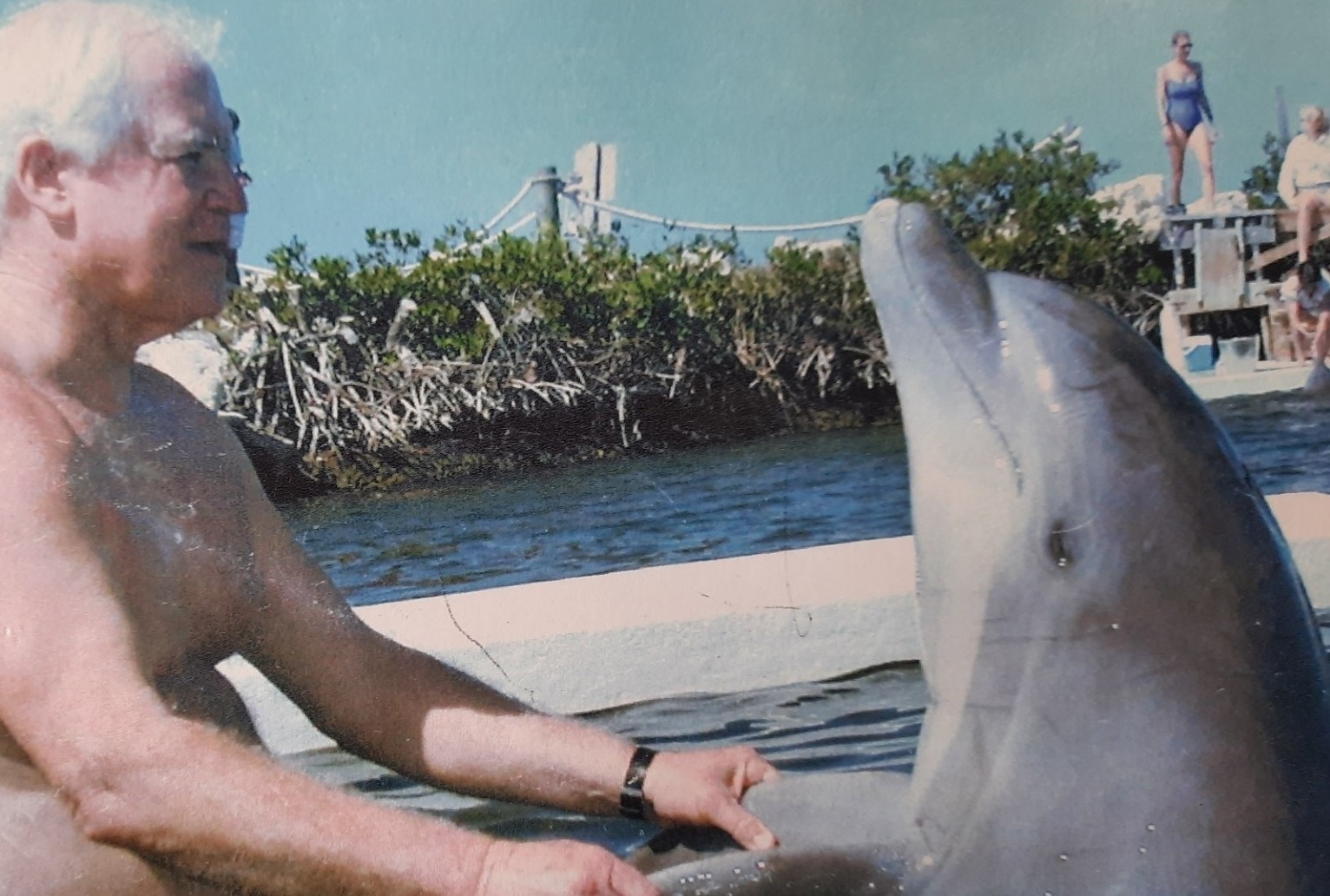 Photo [below] of Dolphin Kibby and Dr. Boylan shaking "hands".